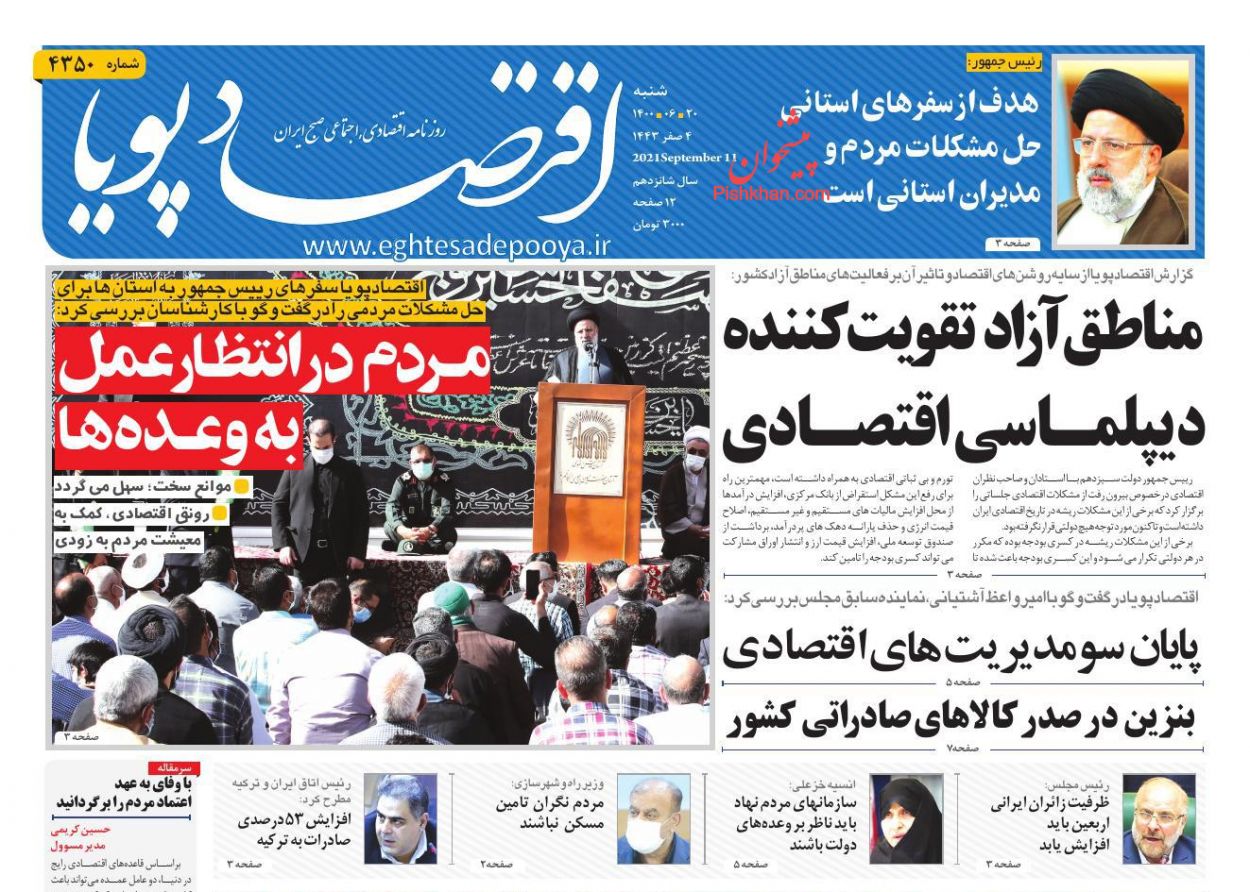 عناوین اخبار روزنامه اقتصاد پویا در روز شنبه ۲۰ شهریور