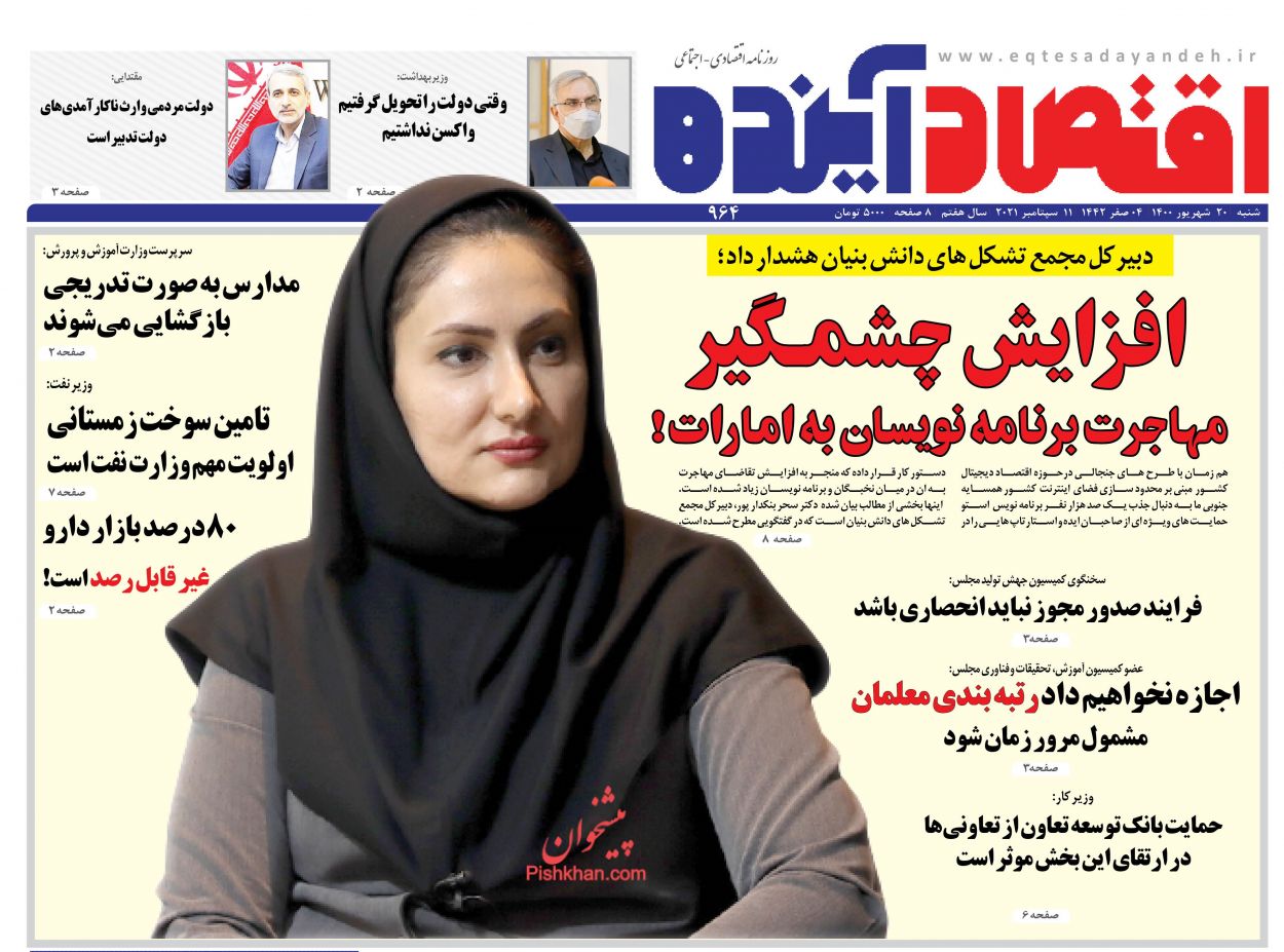 عناوین اخبار روزنامه اقتصاد آینده در روز شنبه ۲۰ شهریور
